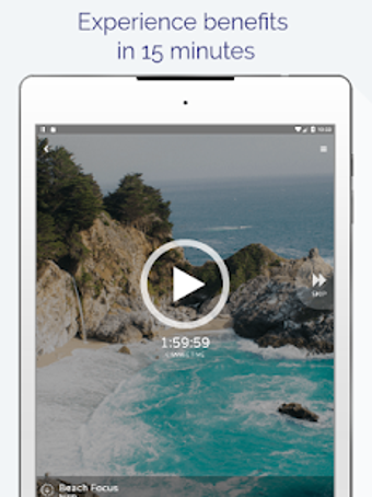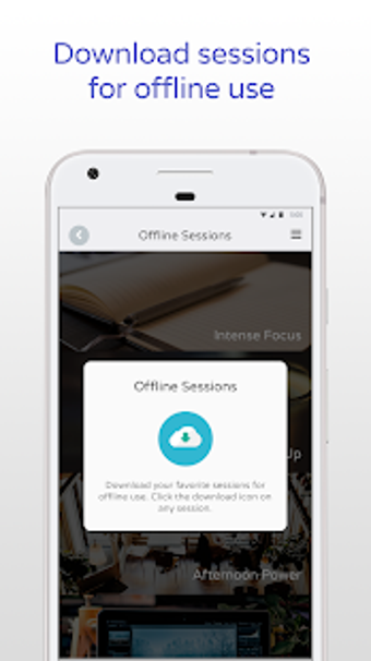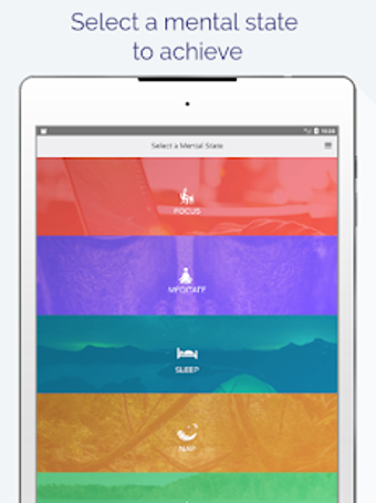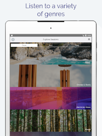 يجمع التطبيق بين علم الأعصاب السمعية والموسيقى لتحسين التركيز والدراسة والإنتاجية والتركيز ومرض الفرط النشاط والاسترخاء والنوم والقيلولة أو التأمل في غضون 5 دقائق من الاستخدام. يتضمن التطبيق موسيقى وأصوات بيئية مصممة للتركيز والنوم والاسترخاء والتأمل. يسمح التطبيق أيضًا للمستخدمين بتنزيل الجلسات للاستخدام دون اتصال وضبط مستوى التحفيز الخاص بهم (مستوى تأثير الأعصاب).